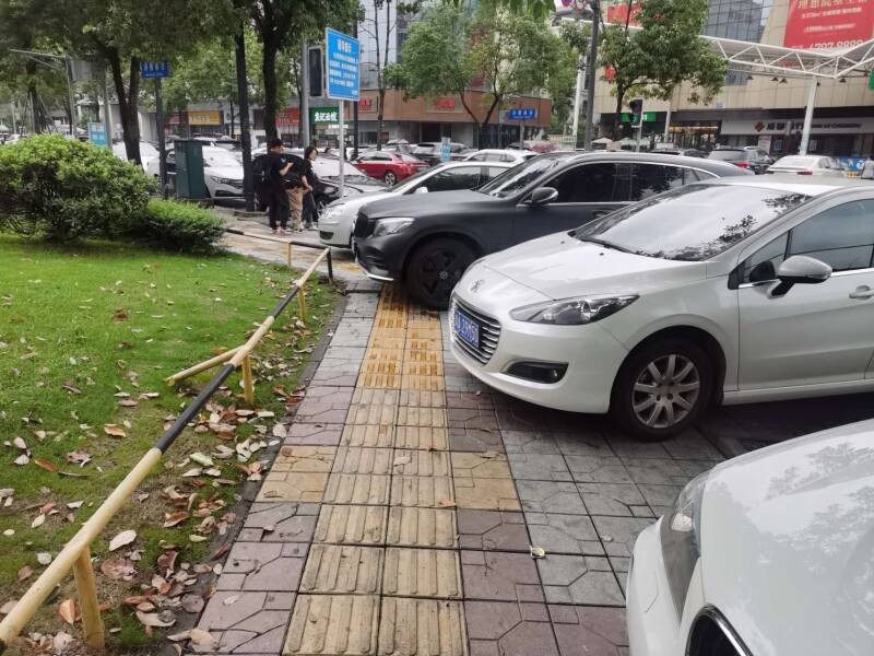 Exhibit A: Of what grinds our gears! The yellow tiles pictured above have raised grooves for those with visual impairments to navigate around. I often see these tiles covered with the front ends of illegally parked cars.